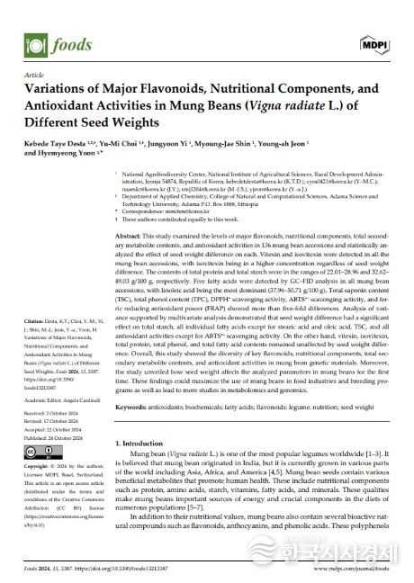연구진은 한국, 중국, 인도에서 수집한 136개의 녹두 유전자원을 무게에 따라 구분하고 플라보노이드(비텍신, 이소비텍신) 등 주요 유용성분, 항산화 활성 등을 정밀 분석했다.