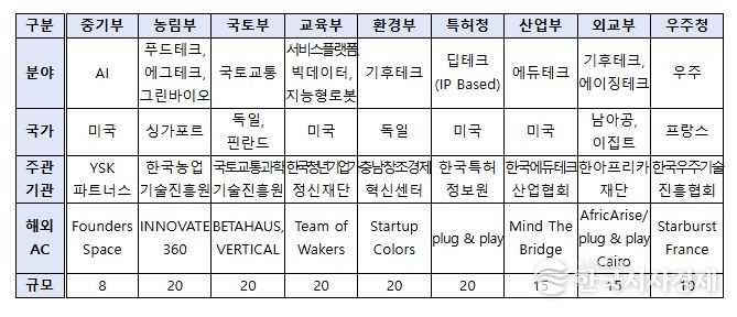 올해는 9개 부처가 참여하여 각 부처가 보유한 산업 분야별 전문성과 국제적(글로벌) 역량을 바탕으로 유망 창업기업 148개사의 글로벌 진출을 맞춤형으로 지원한다. 특히, 중기부는 국내 인공지능(AI) 창업기업(스타트업)의 성장과 세계적(글로벌) 경쟁력 강화를 위해 인공지능(AI) 기반시설(인프라)이 풍부하고 세계 시장을 선도하는 미국 시장을 중심으로 특화지원을 강화할 계획이다.