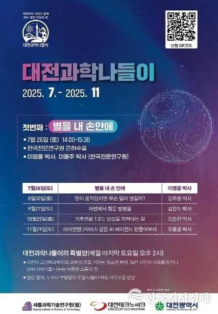 세종과학기술연구원 협동조합은 ‘대전 과학나들이’를 통해 매달 마지막 주 토요일, 국립중앙과학관 등 대전 내 과학 명소에서 인공지능(AI), 양자컴퓨터 등 최신 과학기술을 소개하고, 시민들의 궁금증을 해소하는 강연 및 Q·A 토크쇼를 5회 진행한다.