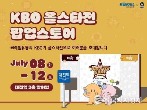 한국시사경제 스포츠팀 | KBO는 ‘2025 신한 SOL뱅크 KBO 올스타전’을 맞이하여, 코레일유통(대표 박정현)과 함께 대전역 내 ‘KBO 올스타전 팝업스토어’를 운영한다.