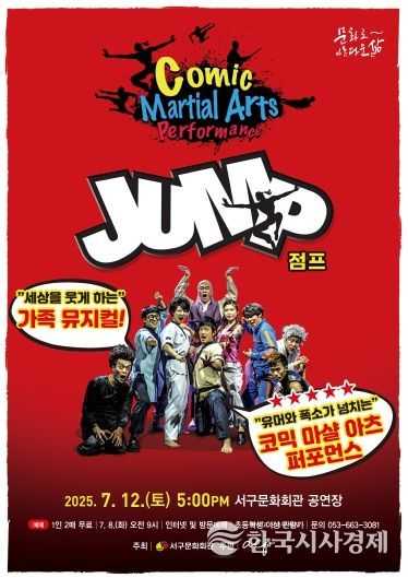 한국시사경제 대구취재본부 | 서구문화회관은 오는 7월 9일부터 12일까지 서구문화회관 공연장에서 코믹 마샬아츠 퍼포먼스‘점프’공연을 무대에 올린다.