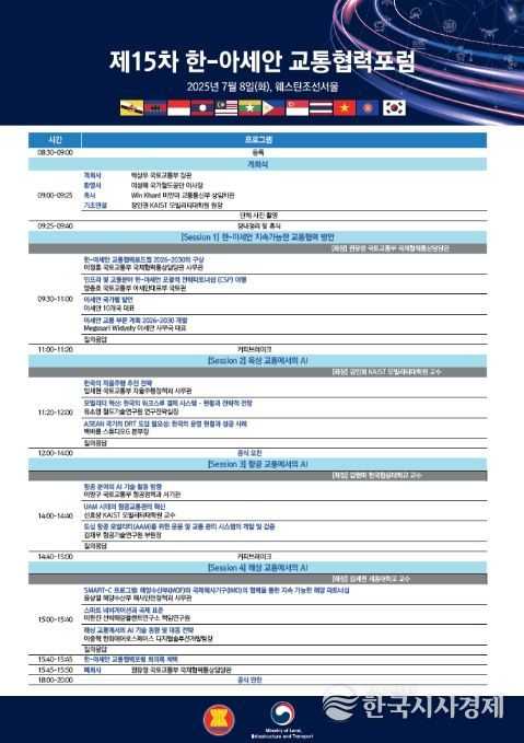 한국시사경제 해외팀 | 국토교통부는 7월 8일 서울에서 '제15차 한-아세안 교통협력포럼'을 개최한다.