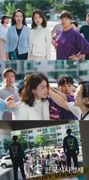 이와 함께 웅성거리는 주민들에게 둘러싸인 공미리(이시영 분), 추경자(정영주 분), 전지현(남기애 분)은 한 여성과 살벌한 신경전을 벌이며 시선을 강탈한다.