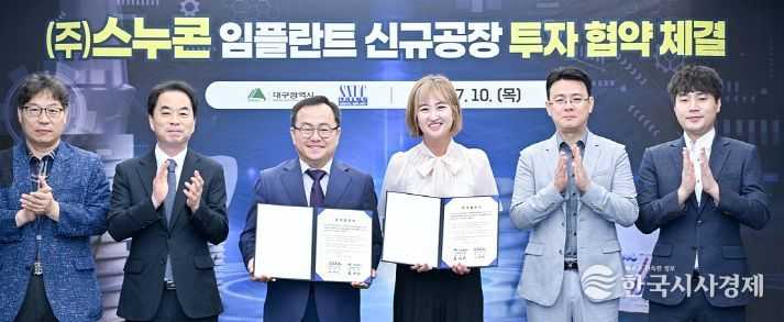 한국시사경제 대구취재본부 | 대구광역시는 7월 10일 대구광역시청 산격청사에서 임플란트 글로벌 강소기업인 ㈜스누콘(대표 박영우)과 치과용 임플란트 신규공장 2개소 건립을 위한 투자협약을 체결했다.