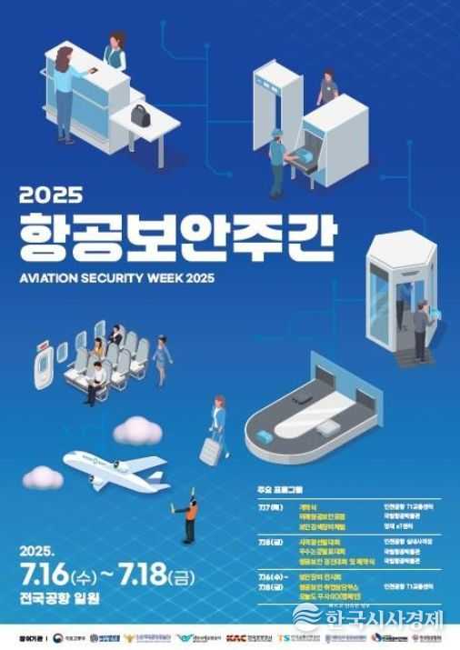 한국시사경제 김숙영 기자 | 국토교통부는 국가정보원, 경찰청과 함께 7월 16일부터 18일까지 3일간 인천, 김포, 김해 등 전국 15개 공항에서 ‘2025 항공보안주간’을 개최한다.
