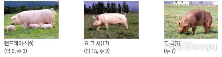 씨돼지 도입 규격은 90kg 도달일령, 등지방두께, 등심단면적, 동복생존산자수 중 3가지 항목 이상에서 요구조건을 충족해야 한다.