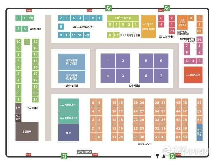 이번 박람회는 중학생부터 고3 및 졸업생까지 다양한 연령대 참가자의 눈높이에 맞춰 1:1 상담부터 소규모 특강 등 다양하게 구성된 진학부문 13개관, 진로부문 3개관, 총 16개관이 마련됐다.