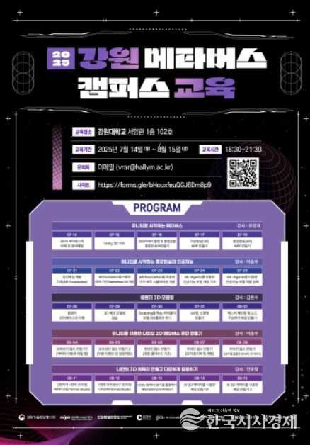 한국시사경제 김숙영 기자 | 강원정보문화산업진흥원이 운영하는 강원 메타버스 지원센터는 7월 14일부터 5주 동안 강원대학교 서암관에서 ‘강원 메타버스 캠퍼스’ 교육을 운영한다고 밝혔다.