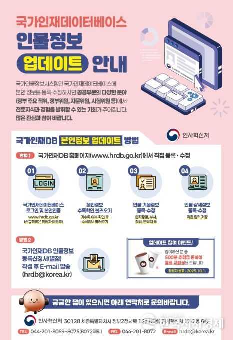 대상자는 국가인재디비 누리집에 접속해 본인의 정보를 직접 수정하거나 이력서를 전자우편으로 보내면 된다.