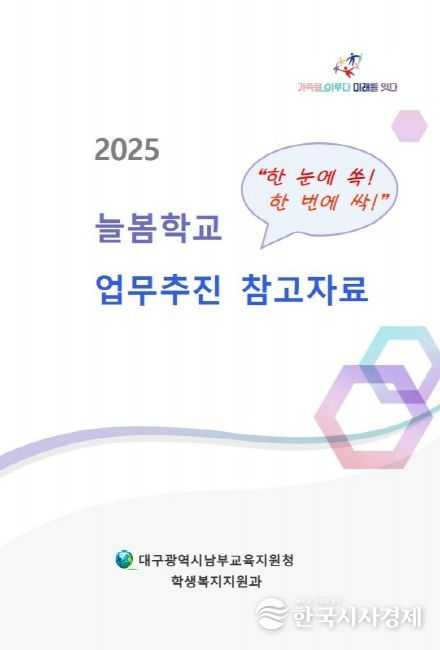 한국시사경제 대구취재본부 | 대구남부교육지원청은 늘봄교육행정실무사가 늘봄학교 업무를 체계적으로 수행할 수 있도록 '늘봄학교 업무추진 참고자료'를 발간해 배포한다고 밝혔다.
