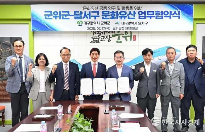 한국시사경제 대구취재본부 | 대구 달서구는 지난 17일 지역 문화유산을 중심으로 관광자원 개발과 상생 협력을 위해 군위군과 업무협약을 체결했다.