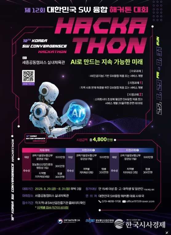 올해는 ‘인공지능(AI)으로 만드는 지속 가능한 미래’를 주제로 8월 29일부터 31일까지 세종특별자치시 세종공동캠퍼스 실내체육관에서 전국 60개 팀이 SW융합 제품과 서비스 개발을 위한 경연을 펼칠 예정이다.