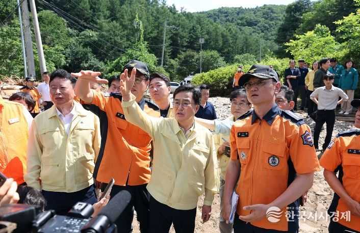 김동연 지사는 마을회관에서 현장취재 기자들과 만나 “이번 폭우로 희생되신 분들, 가족분들에게 심심한 위로 말씀을 드린다”면서 “실종자 구조에 최우선 역점을 두고, 전 소방력과 행정력을 동원해서 실종되신 분들 수색작업에 온 힘을 기울이고 있다”고 밝혔다.