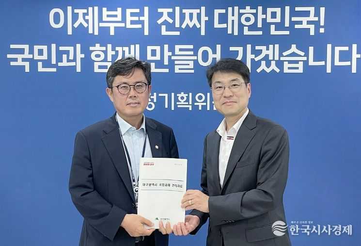 한국시사경제 대구취재본부 | 김정기 대구광역시장 권한대행 행정부시장은 24일 국정기획위원회를 방문, 안도걸 기획분과 기획위원(더불어민주당 광주 동구남구을, 국회 기재위 위원)을 만나 지역 핵심 현안의 국정과제 반영을 적극 건의했다.