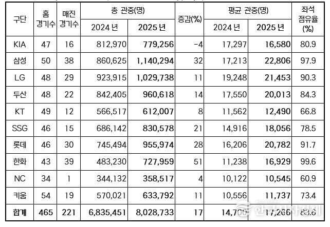 종전 800만 관중 달성까지 소요됐던 역대 최소 경기는 2024 시즌의 549경기였으나, 오늘 465경기만에 800만 관중을 달성함에 따라 종전 기록을 84경기 단축했다.
