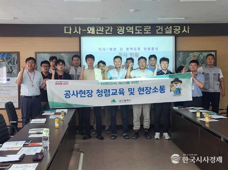 한국시사경제 대구취재본부 | 대구광역시는 공사 관리·감독 업무의 청렴도를 높이고, 시정 전반에 대한 청렴인식 개선과 청렴문화 확산을 위해 4월 15일부터 7월 28일까지 주요 건설공사장에 대한 현장 청렴교육을 실시했다.