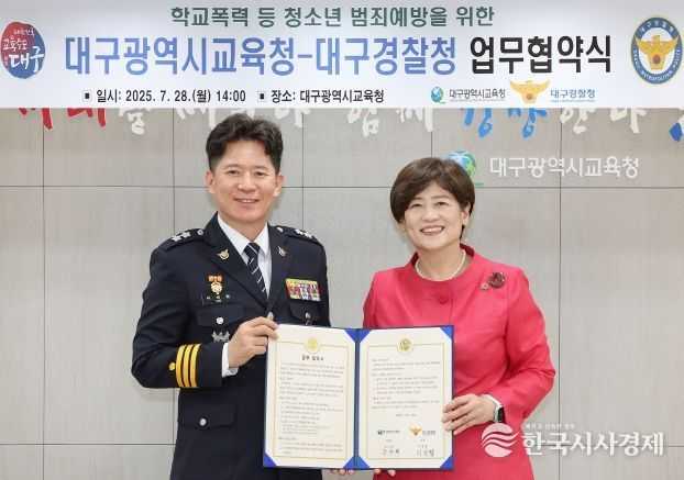 한국시사경제 대구취재본부 | 대구시교육청은 7월 28일 오후 2시 시교육청 접견실에서 학교폭력 및 청소년범죄예방과 학교 안전망 강화를 위해 대구경찰청(청장 이승협)과 업무협약을 체결했다.