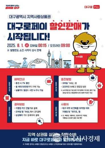 한국시사경제 대구취재본부 | 대구광역시는 지역 경기 회복 및 소비 활성화를 위해 오는 8월 1일부터 대구 지역사랑상품권인 ‘대구로페이’ 할인 판매를 개시한다.