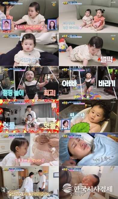 무엇보다 재이의 성장이 눈길을 끌었다. 재이는 손가락으로 곤지곤지 개인기를 보여주는가 하면, 연속 뒤집기에 이어 두 팔에 힘을 주고 상체를 벌떡 일으켜 세우며 하루가 다르게 성장하고 있음을 보여줬다.
