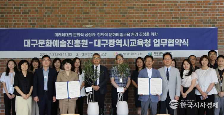 한국시사경제 대구취재본부 | (재)대구문화예술진흥원은 지난 7월 31일, 대구광역시교육청과 문화예술교육 활성화를 위한 업무협약을 체결하고, 영유아의 문화적 성장을 지원하고 현장 중심의 교육 환경을 조성하기 위한 협력 사업을 본격적으로 추진할 예정이다.