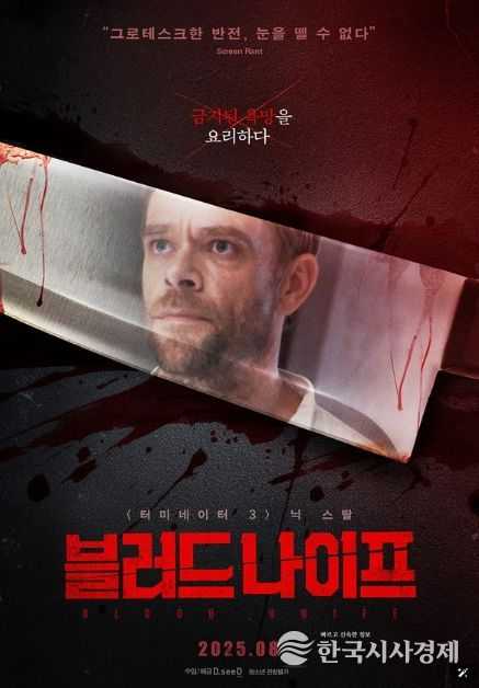 '터미네이터 3' 닉 스탈 주연의 스릴러 영화 '블러드 나이프'가 8월 21일 국내 개봉을 확정하며 충격적인 반전과 잔혹한 서스펜스를 예고하는 메인 포스터와 예고편을 공개했다.