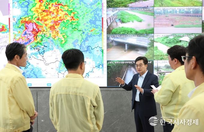 한국시사경제 이정이 기자 | 경기도가 13일 오전 4시 30분부로 호우 대비 재난안전대책본부 비상 1단계를 발령한 가운데 김동연 경기도지사가 경기도 재난안전대책본부를 찾아 호우 피해상황을 살펴보고 대응체계를 점검했다.