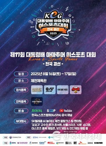 한국시사경제 스포츠팀 | 문화체육관광부는 8월 16일부터 17일까지 제천체육관에서 ‘제17회 대통령 배 아마추어 이스포츠 대회’ 전국 결선을 개최한다. 이번 대회는 네이버 치지직, 숲(SOOP), 유튜브를 통해 온라인으로 생중계하며, 누구나 현장에서 무료로 관람할 수 있다.