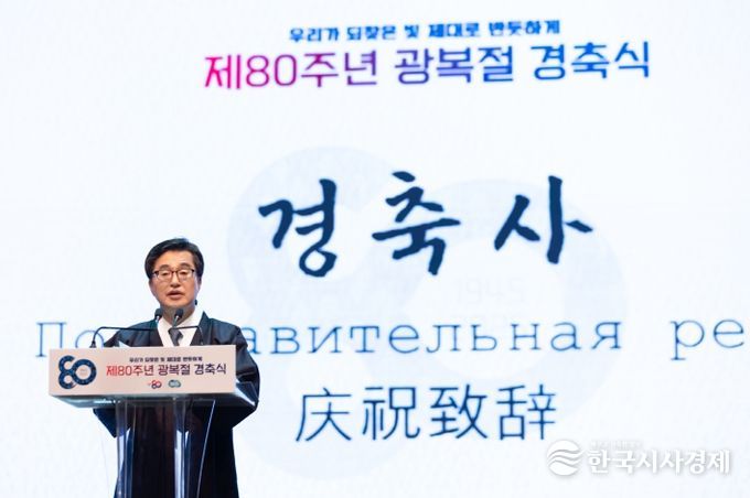 김동연 경기도지사는 이날 경축사를 통해 “지난 몇 년, 역사가 거꾸로 흐르는 듯한 순간들이 있었지만, 광복 80년 경기도는 우리 역사의 뿌리를 굳건히 세우고 독립의 정신을 온전히 되살리는 여정을 시작했다”며 “그 여정의 이정표 중 하나가 바로 안중근 의사가 남기신 ‘독립’과 ‘장탄일성 선조일본’ 두 유묵이다”라고 말했다.