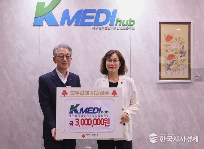 한국시사경제 대구취재본부 | 케이메디허브는 지난 18일 집중호우 피해지역 및 이재민 지원을 위해 성금 300만 원을 사회복지공동모금회에 기탁했다.