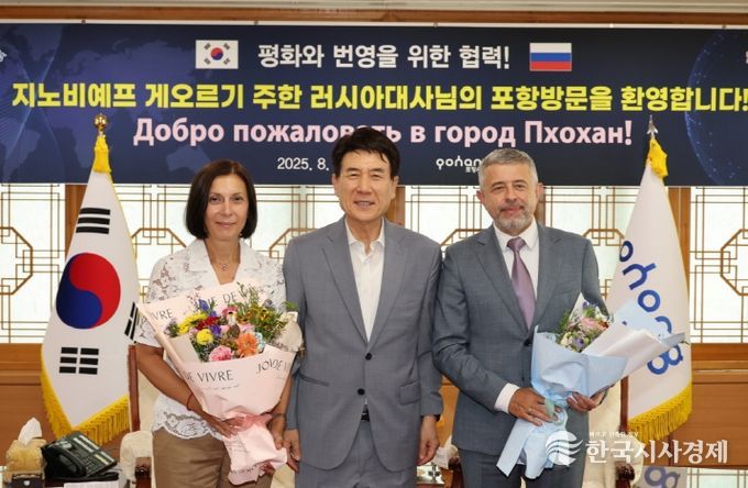 한국시사경제 해외팀 | 이강덕 포항시장은 지난 20일 포항을 방문한 지노비예프 게오르기 주한 러시아 대사와 두드니크 옥사나 주부산 러시아 총영사를 만나 한-러 간 지방정부 교류 재개와 북극항로 협력 확대 방안을 논의했다.
