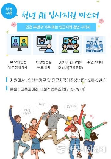 한국시사경제 경제팀 | 부평구는 신한은행의 사회공헌활동 일자리사업 지원으로 추진되는 실전형 취업지원 프로그램 ‘청년 AI 입사지원 마스터’를 오는 22일부터 2026년 3월까지 운영한다고 밝혔다.