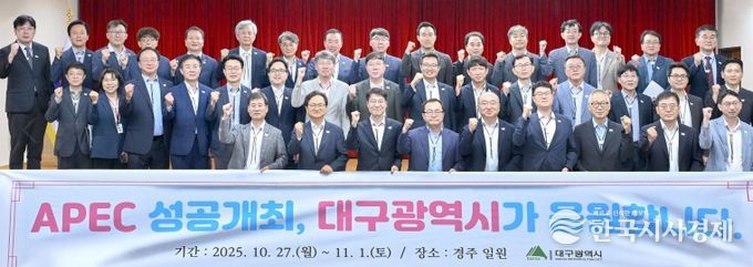 - 김정기 대구광역시장 권한대행 행정부시장은 “오는 10월 경주에서 열리는 ‘APEC 정상회의’는 대구경북 지역의 국제적 위상을 높이는 중요한 행사”라며, “성공적인 행사 개최를 위해 적극적인 홍보와 함께 지역을 방문하는 외국인들이 불편함이 없도록 음식·숙박·관광 등의 수용태세 점검에 만전을 기해 달라”고 당부했다.