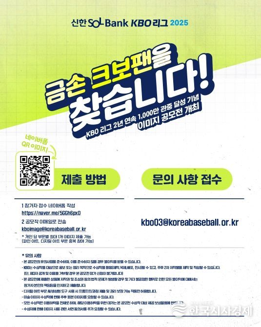 한국시사경제 스포츠팀 | KBO가 2년 연속 1,000만 관중 달성을 기념해 이미지 공모전을 개최한다.