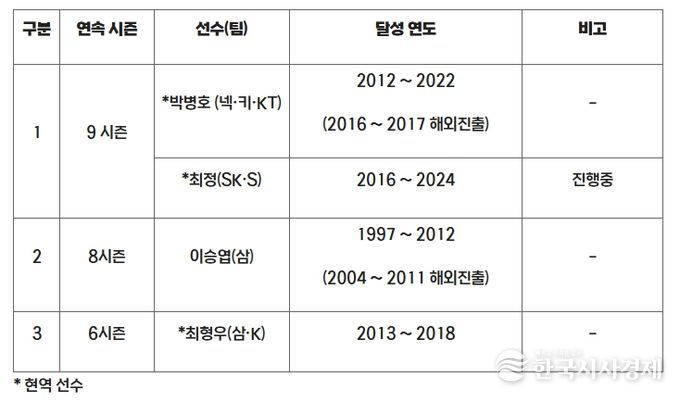 현재 KBO 리그 최다 연속 시즌 20홈런 기록은 삼성 박병호와 최정 두 명이 가지고 있는 9시즌 연속이다. 8월 30일 현재 시즌 18개의 홈런을 기록 중인 최정은 앞으로 2개의 홈런을 추가할 경우, 10시즌 연속 20홈런을 달성하며 이 부문 단독 1위에 오르게 된다.