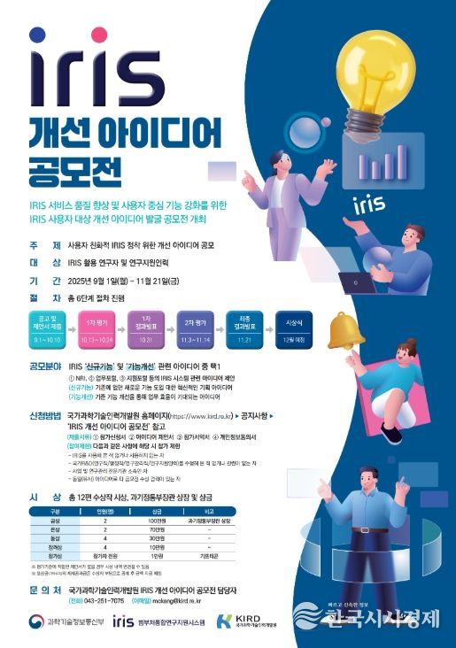한편, 공모전 신청 방법 및 제안서 양식 등 자세한 사항은 국가과학기술인력개발원(KIRD) 홈페이지에서 확인할 수 있다.