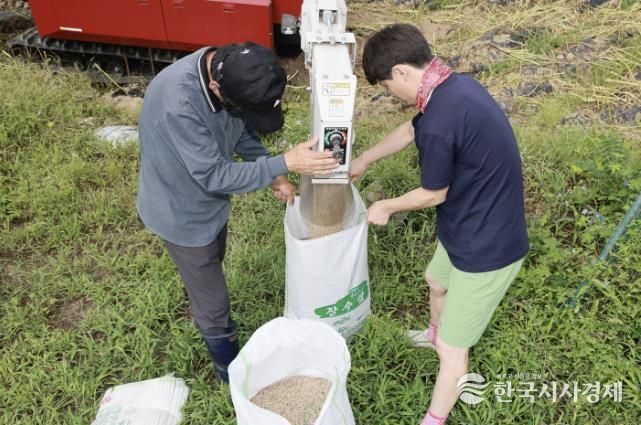 이날 현장에는 인근 기계화 재배 관심농가 20여 명과 前 경북농업기술원 연구사 권중배 박사 등이 참석해 수확 과정을 참관했다. 이번 시연은 지난 5월 8일 직파한 0.8ha 규모 재배포장에서 진행됐으며, 10a당 90kg 이상의 수확량이 예상되는 등 기상 여건이 좋아 목표를 웃도는 생산량이 기대된다.