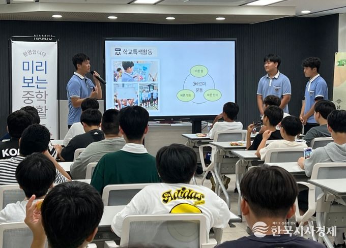 한국시사경제 한장선 객원기자 | 제주도교육청 남주중학교는 2일 서귀포초등학교와 서귀중앙초등학교 6학년 남학생들을 대상으로 ‘미리 보는 중학 생활’ 학교 설명회를 실시했다.