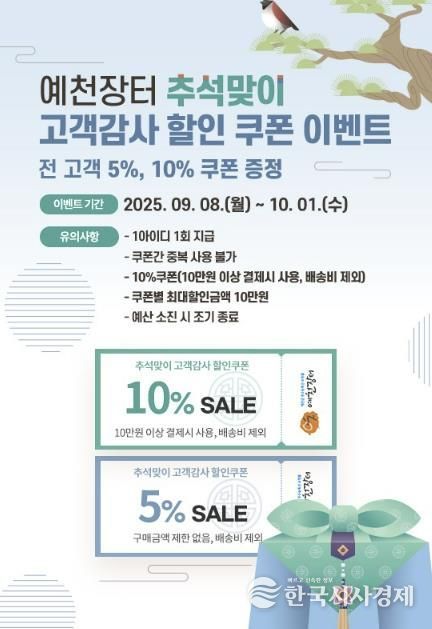 한국시사경제 한장선 객원기자 | 예천군 온라인 쇼핑몰 예천장터가 2025년 추석맞이 특별판매를 9월 8일부터 10월 1일까지 진행한다.