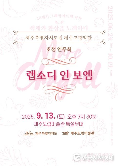 한국시사경제 한장선 객원기자 | 제주특별자치도 제주도립미술관이 현재 진행 중인《마르크 샤갈》과 《강태석》 기획전시와 연계한 특별 클래식 연주회를 개최한다.