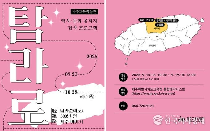 한국시사경제 한장선 객원기자 | 제주도교육청 제주교육박물관은 오는 23일부터 10월 28일까지 매주 화요일 도내 초등 작은학교 학급 단체를 대상으로 역사·문화 유적지 답사 프로그램 ‘탐라로’를 운영한다.