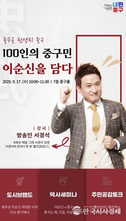 이벤트 참여자 중 100명을 선정해 아이스크림 기프티콘도 증정한다. 충무공과 중구의 가치를 담아낸 긍정적이고 건설적인 메시지를 남길수록 당첨 확률이 높다. 선정 결과는 10월 16일 공식 인스타그램을 통해 발표된다.