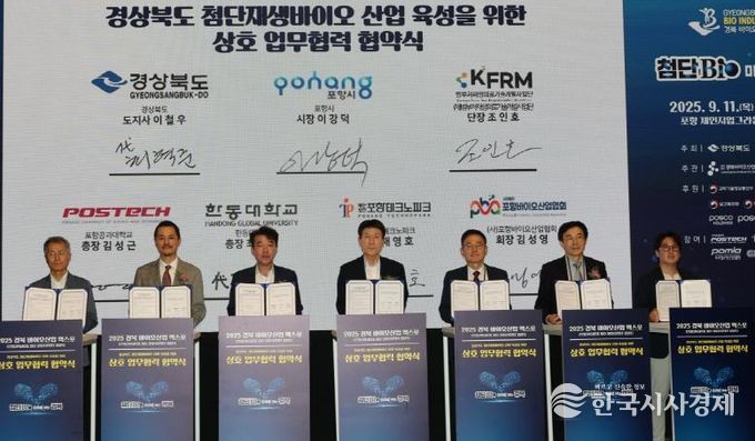 이어 경상북도, 포항시, 범부처재생의료기술개발사업단, 포스텍, 한동대학교, 포항테크노파크, 포항바이오산업협회가 함께 ‘경북 첨단재생바이오 산업 육성을 위한 상호 업무협력 협약(MOU)’을 체결하며 기술·연구 교류와 제도적 연계를 강화하고 공동 협력 체계를 구축하기로 했다.