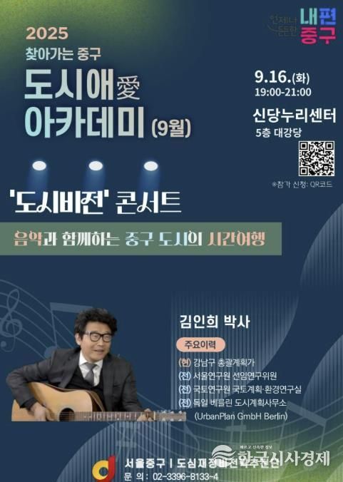 이번 아카데미는 ‘도시비전 콘서트’라는 부제와 함께, ‘음악과 함께하는 중구 도시의 시간여행’을 주제로 인문학과 도시계획을 결합한 색다른 강연이 진행된다.