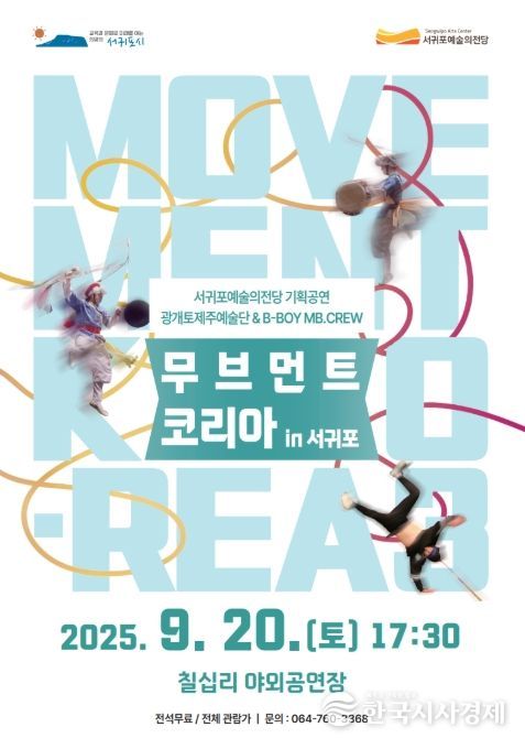 한국시사경제 한장선 객원기자 | 서귀포예술의전당은 2025년 9월 20일 오후 5시 30분, 칠십리야외공연장에서 기획공연 '무브먼트 코리아 in 서귀포'를 개최한다.