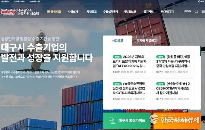 대구시는 2014년부터 ‘대구수출지원시스템’을 구축·운영하며, 지역 기업들이 해외 마케팅 지원사업 신청과 수출 통계 조회를 편리하게 이용할 수 있도록 지원해 왔다.