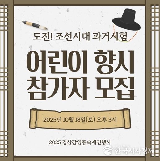 ‘어린이 향시’는 10월 18일부터 이틀간 경상감영공원 일원에서 개최되는 ‘2025 경상감영 풍속재연’ 행사의 체험 프로그램으로, 올해 처음 마련됐다. 초등학생이라면 누구나 신청할 수 있다.