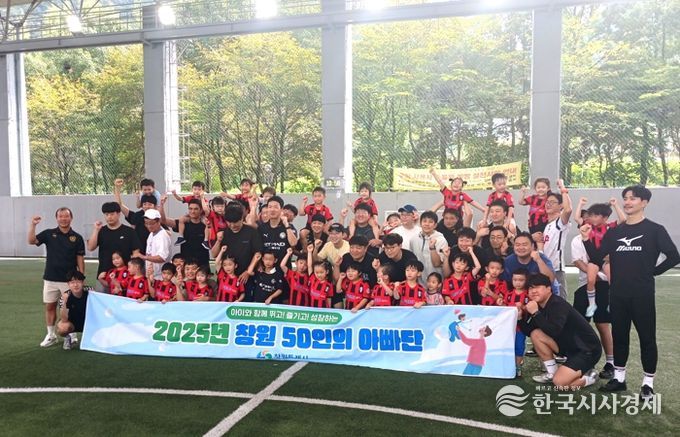 한국시사경제 윤경수 기자 | 창원특례시는 14일 창원축구센터 하프돔에서 ‘창원50인의 아빠단’ 세 번째 공식행사로 ‘축구 코칭 교실’을 개최했다.