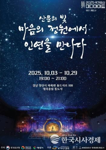 한국시사경제 윤경수 기자 | 양산시는 10월 3일부터 10월 29일까지 통도사에서 ‘2025 국가유산 미디어아트’ 행사를 개최한다고 밝혔다.