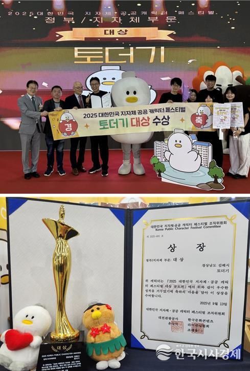 한국시사경제 윤경수 기자 | 김해시는 지난 13일 대전컨벤션센터에서 열린 '2025 대한민국 지자체·공공 캐릭터 페스티벌' 시상식에서 시 대표 캐릭터 ‘토더기’가 대상을 수상했다고 15일 밝혔다.