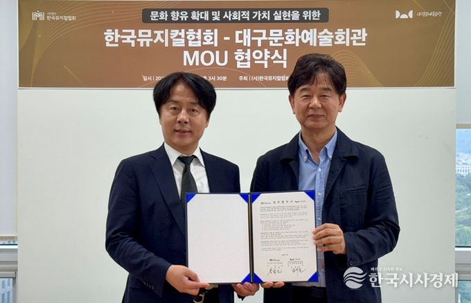 한국시사경제 대구취재본부 | (재)대구문화예술진흥원 대구문화예술회관은 한국뮤지컬협회와 업무협약(MOU)을 체결하고, 창작 뮤지컬 발전과 글로벌 네트워크 강화를 위해 협력하기로 했다.
